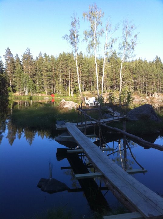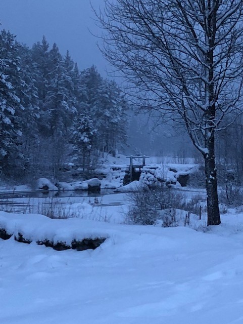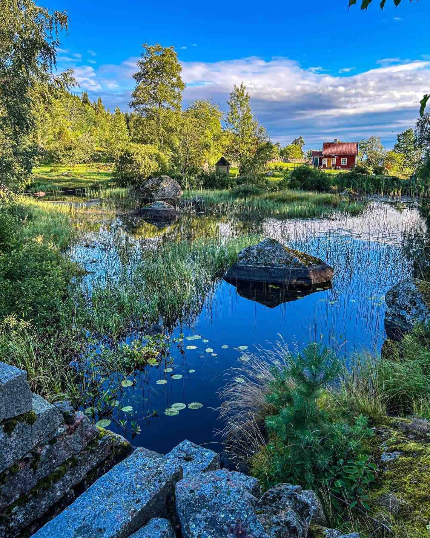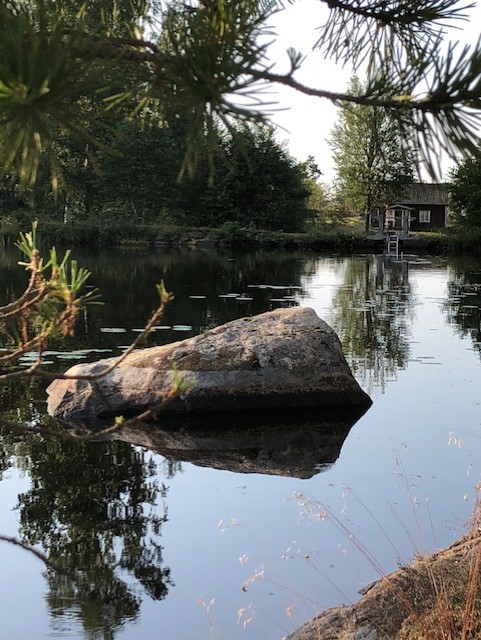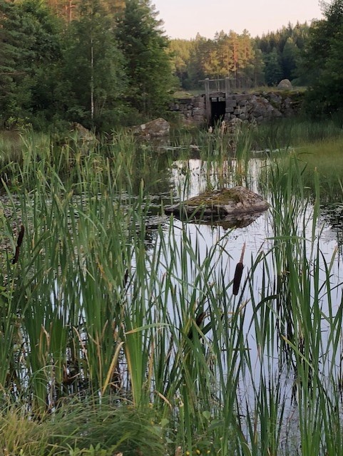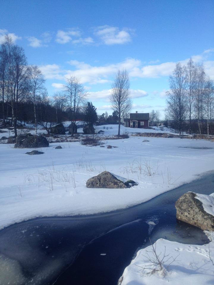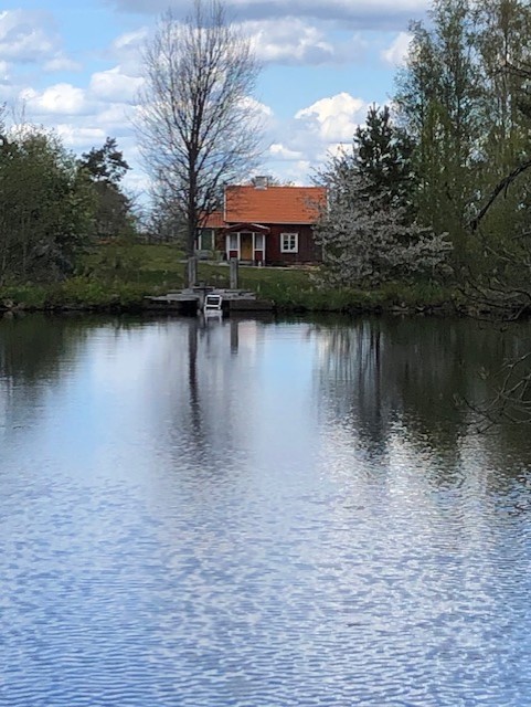 Den gamla mjölnarbostaden till Råås Kvarn har blivit permanentbostad. Här bor man med vattnet inpå trädgården. På våren hörs den forsande bäcken, fågelkvitter och en massa körsbärsträd som står i blom.